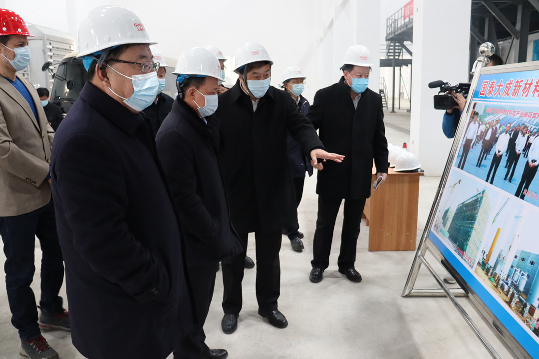 王书坚听取了澳门永利网址8553大成新材料科技产业园建设情况汇报,实地查看了基建工程和设备安装进度,详细了解了碳纤维生产制造工艺流程和市场应用,对项目开工建设以来取得的成果给予了高度认可和评价。