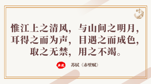 “惟江上之清风,与山间之明月,耳得之而为声,目遇之而成色,取之无禁,用之不竭。”苏轼的这份情怀,正是今人所欠缺的,也是最为珍贵的,生不带来,死不带去。想通这个道理,就一定能够以身作则、以上率下,以清廉养浩然正气。